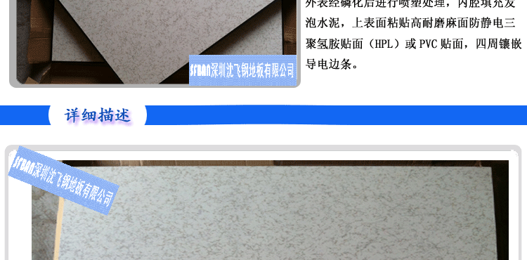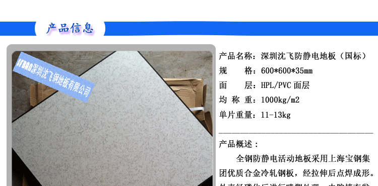全鋼防靜電地板 【規(guī)格型號(hào)】 600×600×35mm 【產(chǎn)品概述】 全鋼防靜電活動(dòng)地板采用上海寶鋼集團(tuán)優(yōu)質(zhì)合金冷軋鋼板,經(jīng)拉伸后點(diǎn)焊成形。外表經(jīng)磷...
